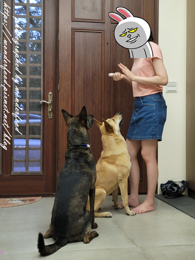 註: 黑色水桶腰那隻是錢錢,黃色貪吃鬼那隻是多多