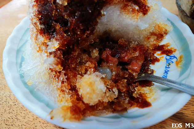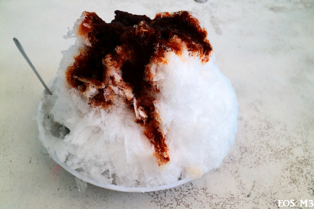 濃郁的黑砂糖漿,已完全把家人選的八種配料淹沒在刨冰裡,也把我們全身沁心涼了呢!