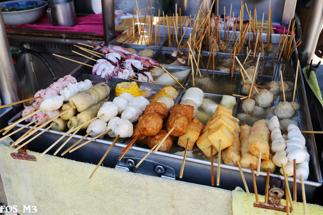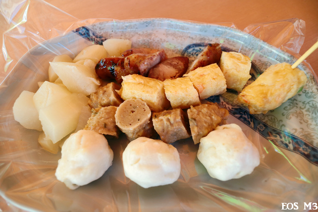 小小攤車裝滿各款關東煮好料,想吃什麼自己拿。若要香腸或米腸,跟老闆說,立刻現烤。