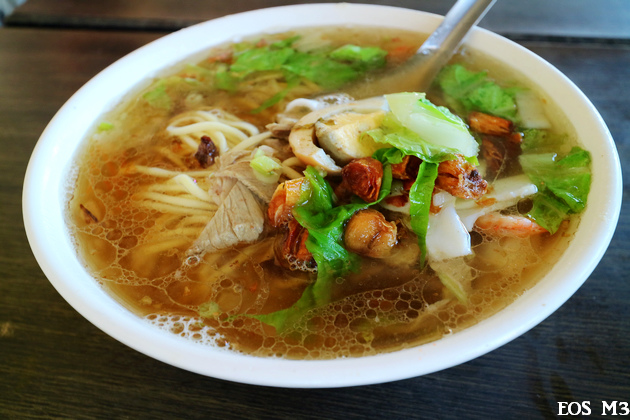花枝Q彈、狗蝦鮮甜、肉片薄嫩,還有滷蛋與青菜......滿滿配料,濃濃澎湖風味的早午餐。
