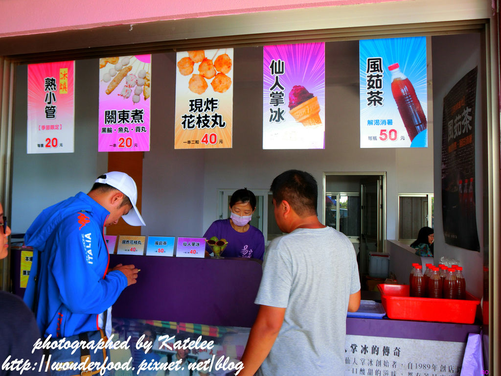 販賣仙人掌冰、紫菜酥、花枝丸、仙人掌冰、小管、飛魚卵香腸等當地特產小吃