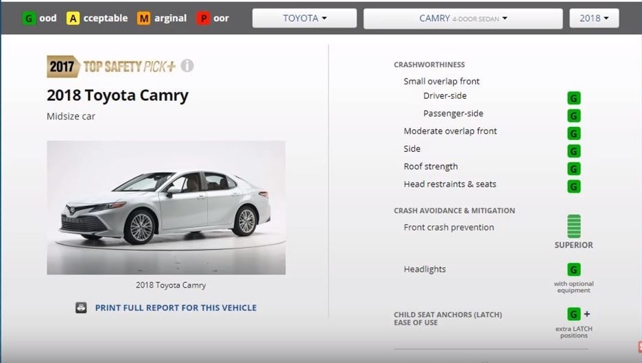 也順便看一下美國IIHS針對2018/19(年式)新型中型房車撞擊測試