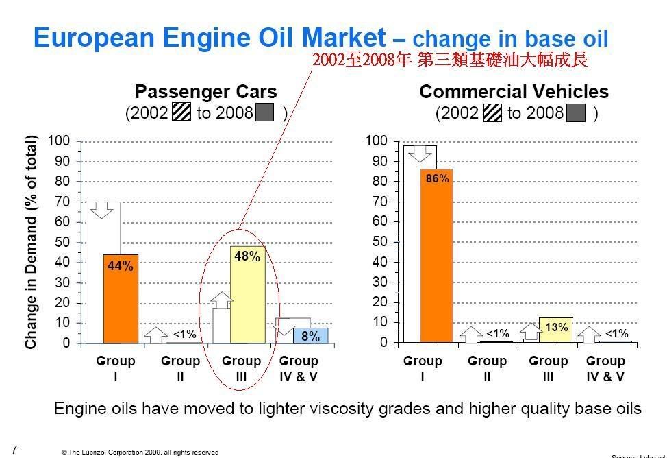 所以不要認為第三類基礎油(Group III)的機油品質不好,歐洲車主都在用大量使用