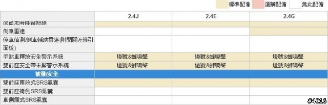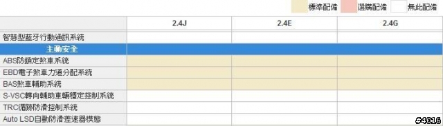 Toyota的網站寫的,這我想再正確不過了,上面寫的2WD 2.4G以下就是沒有車身穩定、循跡防滑系統、側氣囊與氣簾,連選配都沒有得選。