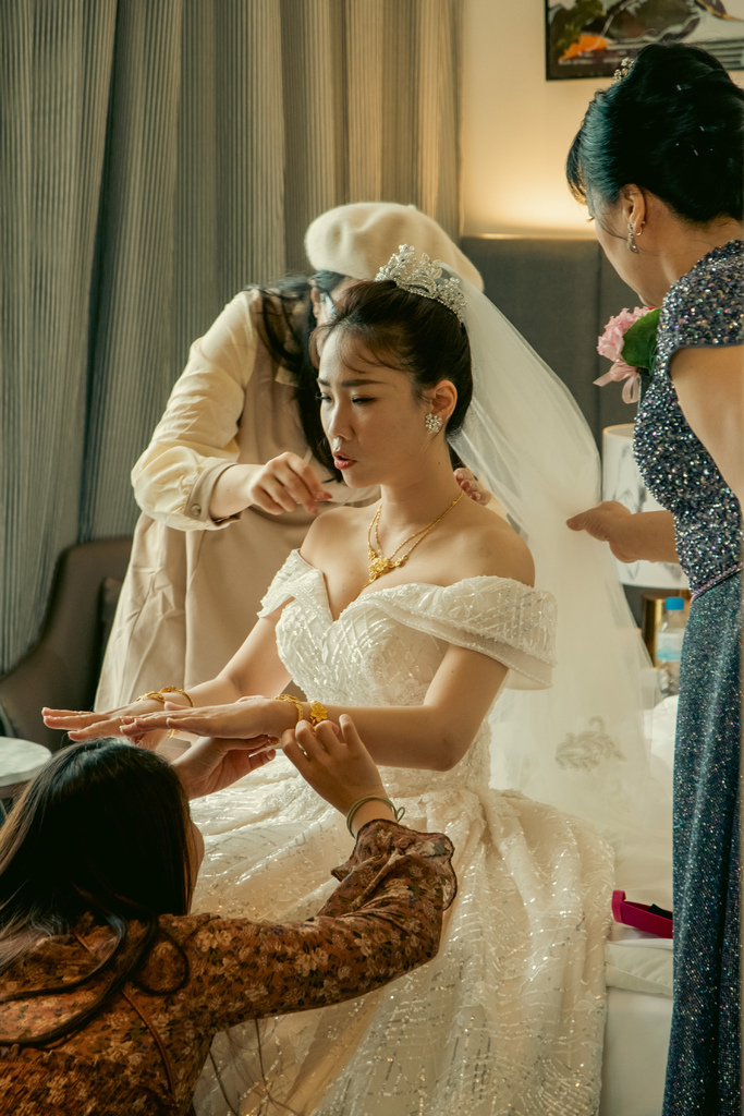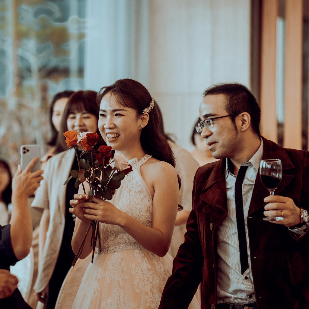 ▼婚禮上除了新人,親朋好友更是重要襯托,捕捉一起同慶的親友身影讓婚禮紀錄更加飽滿,就跟電影有主角和配角,人物的多樣性才能烘托故事情節更加豐滿