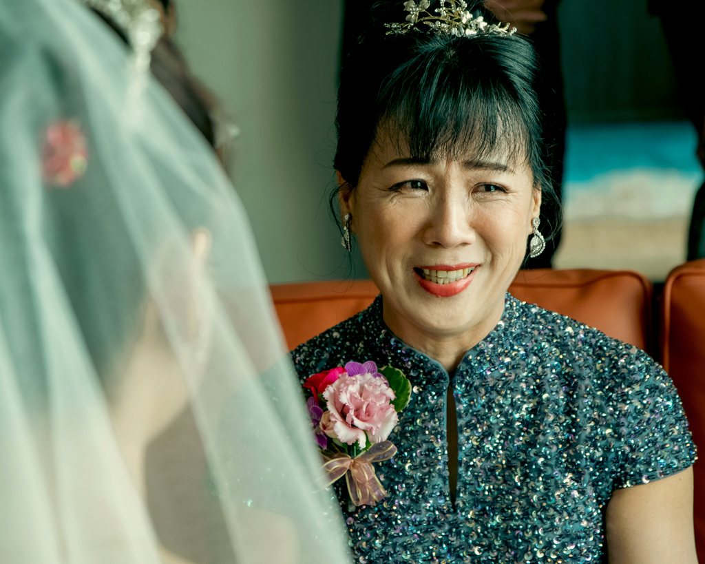 攝影師捕捉到這個瞬間,完整記錄下媽媽的神情,透露著對新人喜結連理的感動與欣慰,此刻連臉上的表情紋都顯得如此細膩