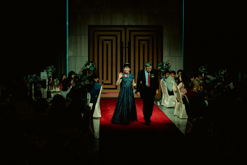 ▼時間軸拉得飛快,轉眼就來到婚禮宴會現場。首先進場的是新人爸媽,開啟婚禮的序幕