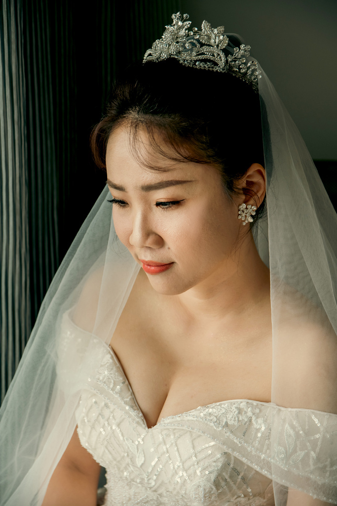 ▼近拍新娘婚紗照,妝容很乾淨,看似簡單的妝容其實很費工夫,每一勾勒都是恰到好處,整體容貌沒有很大的變化,但就是有說不出的好看