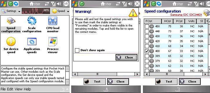 個人覺得Pocket Hack Master應該是ok可用的勒... 但就是卡在test spped那邊會當... 有沒有其他大大想try這個軟體的(英文版)?請PM給我。(依下載網頁的說明,可用的CPU有:Intel XScale系列的 PXA21x、PXA25x、PXA26x、PXA27x与Samsung 的SA1110 芯片和S3C2410系列处理器)