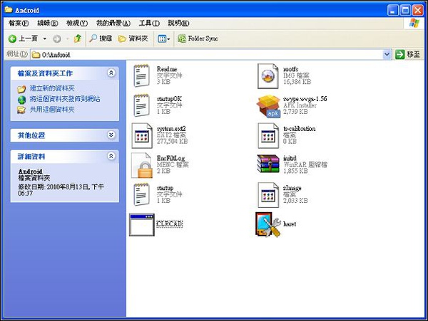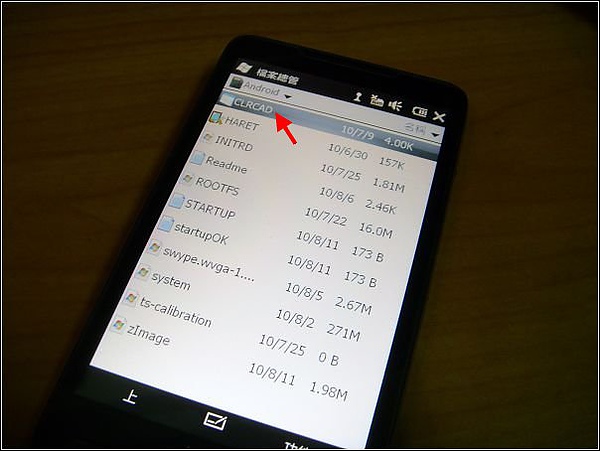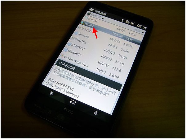 17.將記憶卡插入HD2中,先執行Android目錄中的「CLRCAD.exe」(忘記執行會沒有聲音,播放影片也會有問題):