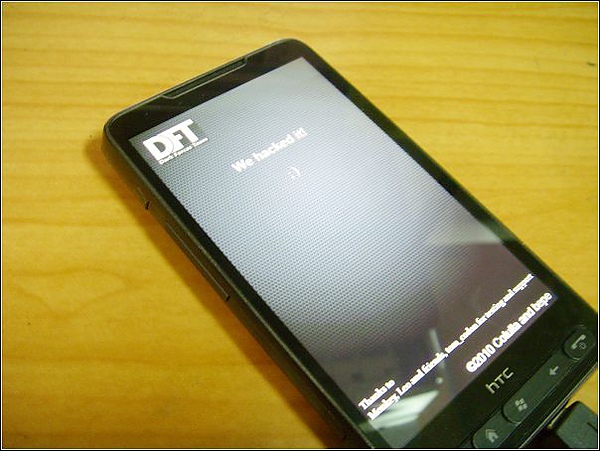 6.如果破解成功的話您的HTC HD2會顯示以下畫面(寫著We hacked it!):