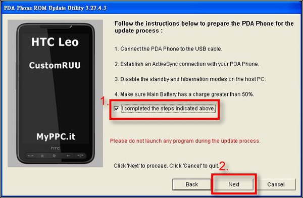 8.接著再度關機,在HD2與電腦連線的狀態下再次進入四色模式(按住音量下+開機),接著執行「Leo_CustomRUU」目錄中的「CustomRUU.exe」: