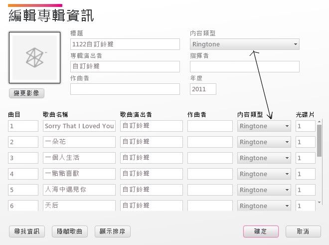你的專輯裡,如果有些歌出現不同演唱者,這樣在專輯選項裡,