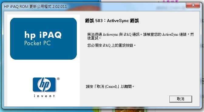 現在我的機器插上底座會出現usb拔起來就是serial mode不過在電腦端要執行sp29840一開始會比對不過再來就出現error 503直接用hx4700_bootloader要直接上rom跳出就關閉了我該怎麼辦~她就這樣沉睡了!感謝解答補上一張執行hx4700_bootloader的錯誤訊息我的系統是win7 64bit所以沒有安裝activesync直接使用win7的裝置中心
