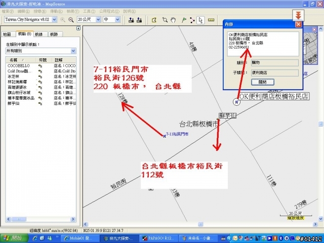 3.沒有了上述2點的參考,則會以Mapsource中或PAPAGO周遭景點地址作參考點或其他網路參考資訊,如下圖