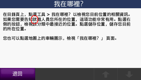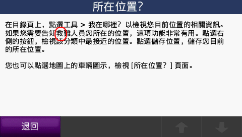 Dopefish wrote:只是發現另一件怪事了,copy回去原處,那說明文件還是沒出現了...(恕刪) 可能你沒發現,名稱變了,因為我一開始也找不到。我更新為3.30查詢「我在哪裡」結果進去看,還是「就」難人員後來從Timber Wolf大提供的檔案下載找了幾次,發現在「工具」→「說明」→「工具」的第二頁,請按往下,名稱變成「所在位置」已經改成「救難」了!感謝Timber Wolf大的檔案。