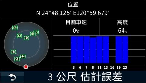 熱開機約需1分鐘定位完成,3分鐘到達3公尺誤差。如下圖