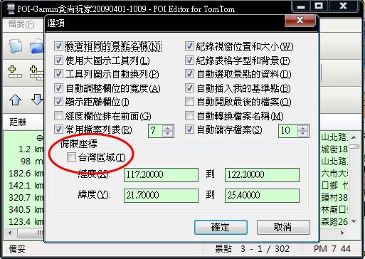 P.S.若有大大用softop大的POI Editor for TomTom開啟此檔,請不要勾選下圖侷限座標。