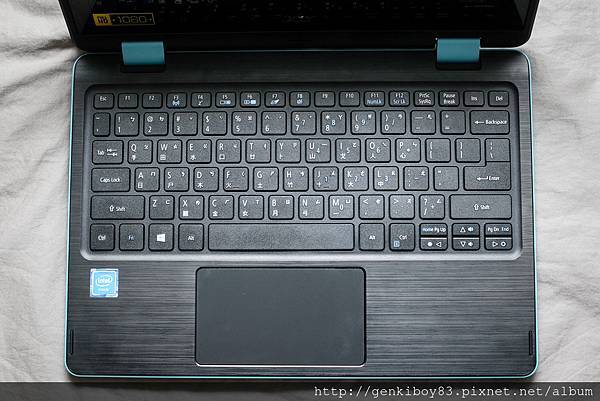 雖然是便宜的小筆電,但是觸控板周邊的靠手區也有拉絲處理,增加不少質感。