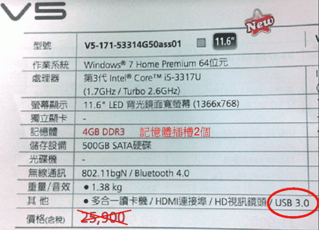 請問各位知道Acer 11.6" V5 (Ivy Bridge)何時會上市嗎? 美國的官網有叫做V5-171-6616. 台灣七月份的Acer店頭紙本型錄也有叫 V5-171-53314G50ass01, 價格是NT$25900. 可是遍尋網路都沒有相關訊息, 請問各位知道他的交貨期或是更細部規格嗎? 謝謝.