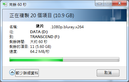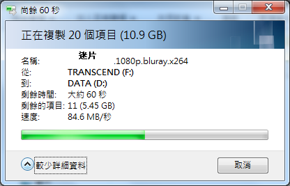 用某部電影藍光版來測試傳檔案來回.. <<<單一個檔案10G>>>