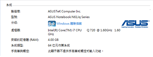 處 理 器 Intel Qaud Core i7-720QM (1.60GHz) Processor