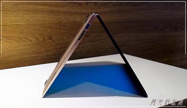 螢幕最大開合角度,採用下潛式的轉軸,掀開螢幕轉軸扭力不錯,螢幕不會晃動