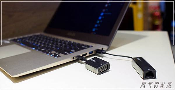 D-SUB轉接線接在Mini D-Sub的孔,而RJ45轉接線則會占用其中一組USB