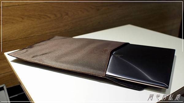 Zenbook UX32VD的配件有黑豆腐變壓器、原廠防刮皮套、VGA轉接線、RJ45轉接線、配件收納袋,幾乎你剛入手會購買的東西都一次附給你了,而且如果你不喜歡他送的皮套...沒關係,因為外型跟MBA幾乎一模一樣,去APPLE專賣店挑一個MBA用的來裝也可以
