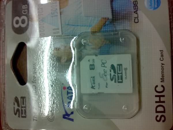 今天要幫我的小白 弄雙系統開機,就要去買記憶卡,本來要買創見的,結果有看到ADATD出 FOR EEEPC 8G,好神奇唷!!所以就賣一張來用看看!! 真美的白色 (用手機拍的見諒...)還有看到一種用推的隨身碟 小小的,也是FOR EEEPC的,也是白的很好看....小弟沒帶錢去 所以就沒買了,還有附一條項吊飾的繩子....寫式寫FOR EEEPC.....