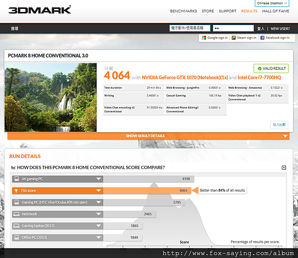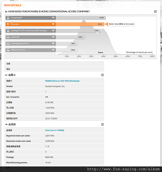 另外咱們也使用 PCMARK 8 對 ROG STRIX GL702VS 進行測試