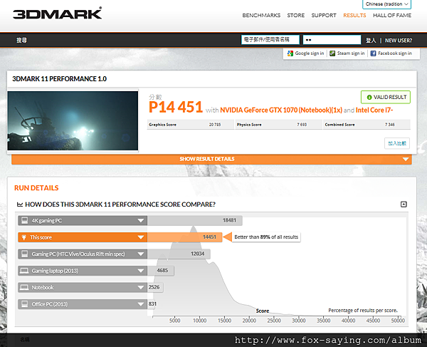 首先是 3DMARK 11 (這一張是我忘了關 G-Sync 的結果)