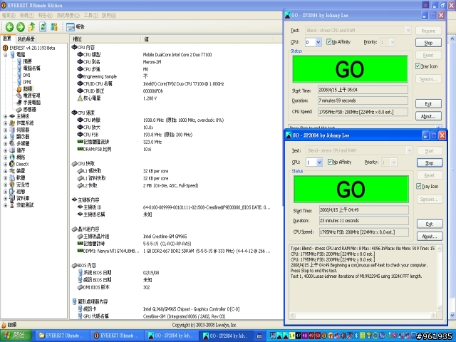今天才幫朋友改xp不過不是獨顯的機種是F9E有圖有真相是吧...(圖有點小不好意思)跑SP2004*2的溫度約CPU溫度約在50上下跑3DMARK2005的溫度約在70上下(圖片中是60上下,因為一停止3DMARK溫度就降下來了)如果以跑文書上網的溫度來說12吋有這樣的程度算是標準以內至於3D功力喔..這台是ONBOARD的所以參考看看就好囉