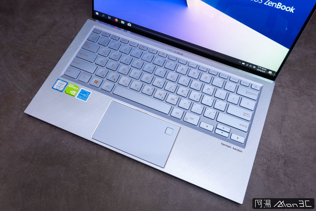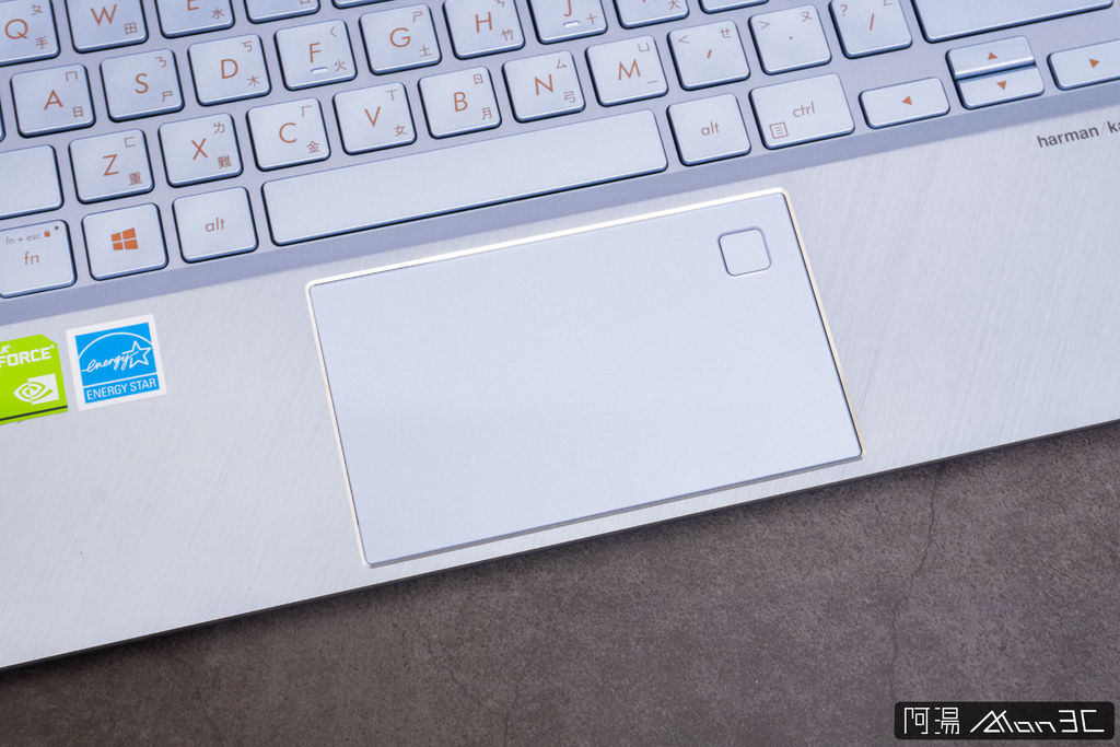 至於觸碰板,受限於這小巧的機身,UX392的觸碰板顯得小巧可愛許多,觸碰很精準、回饋普通,然而觸碰板已經偏小的情況下,右上角那塊指紋辨識...挺佔觸碰板空間的,ATon個人是覺得如果改成IR人臉辨識會比較合適。