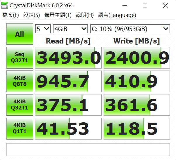 身為輕薄旗艦,SSD採用的是三星的PM981,速度挺快的,在連續寫入也能發揮高性能。