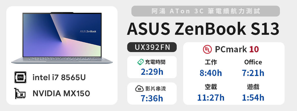 在續航力上,UX392也有著很不錯的表現