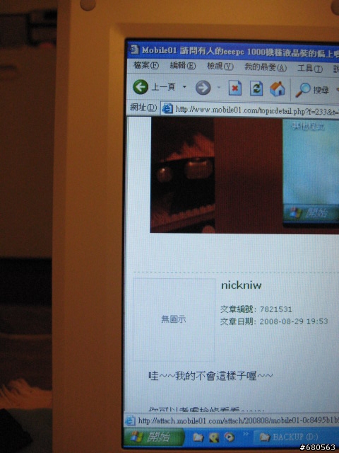 wimmin wrote:不知道樓主買的是不是所以賽揚版本的EeePC 1000HD(是HD不是H)我在這間店家看到兩台螢幕歪的版本就是HD的因為螢幕的關係整個爽度減半阿!所以就沒買了>< 是1000HD版本拆了三台都是如此店家非常熱心的馬上去皇家詢問(果然購買時挑店家是對的)皇家回答"主機板可能有問題" (原廠都這樣子說了)當場貼錢換1000H貼1000H的圖...1000H真的快很多有感覺的