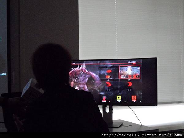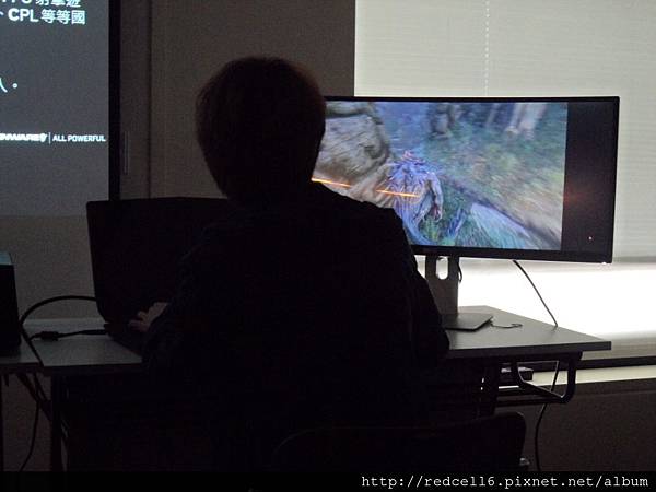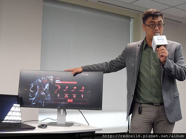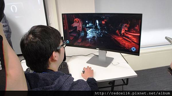 【▼】主持人安迪哥大推的Dell UltraSharp 34 (U3415W) 遊戲專屬曲面顯示器讓Alienware精彩刺激的畫面讓人看了目不轉睛。
