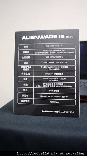這次有幸參與Alienware重回台灣市場的專屬體驗會後,在我腦海中總是還縈繞著當天會場上展示小巧酷炫的Alienware X51-R2小型桌機加上實機上陣的Alienware 15 及 Alienware 17 兩台超高規格的夢幻電競筆電,搭配上NVIDIA GTX 980M頂級獨顯及UHD顯示器就是與眾不同的超吸睛亮點,隨心所欲設定高達十九組的遊戲快捷鍵位組合及十組燈光自訂及千變萬化的燈光特效組合,覺得效能不夠的還可以加購搭配Alienware Graphics Amplifier,讓 Alienware 搖身一變,發揮最高可達 375 瓦的 AMD 或 NVIDIA 桌上型電腦頂級顯示卡效能超頻加持,展現更無以倫比的整體系統效能,讓電競玩家輕鬆自由定義自己獨一無二的頂級電競Alienware Style!