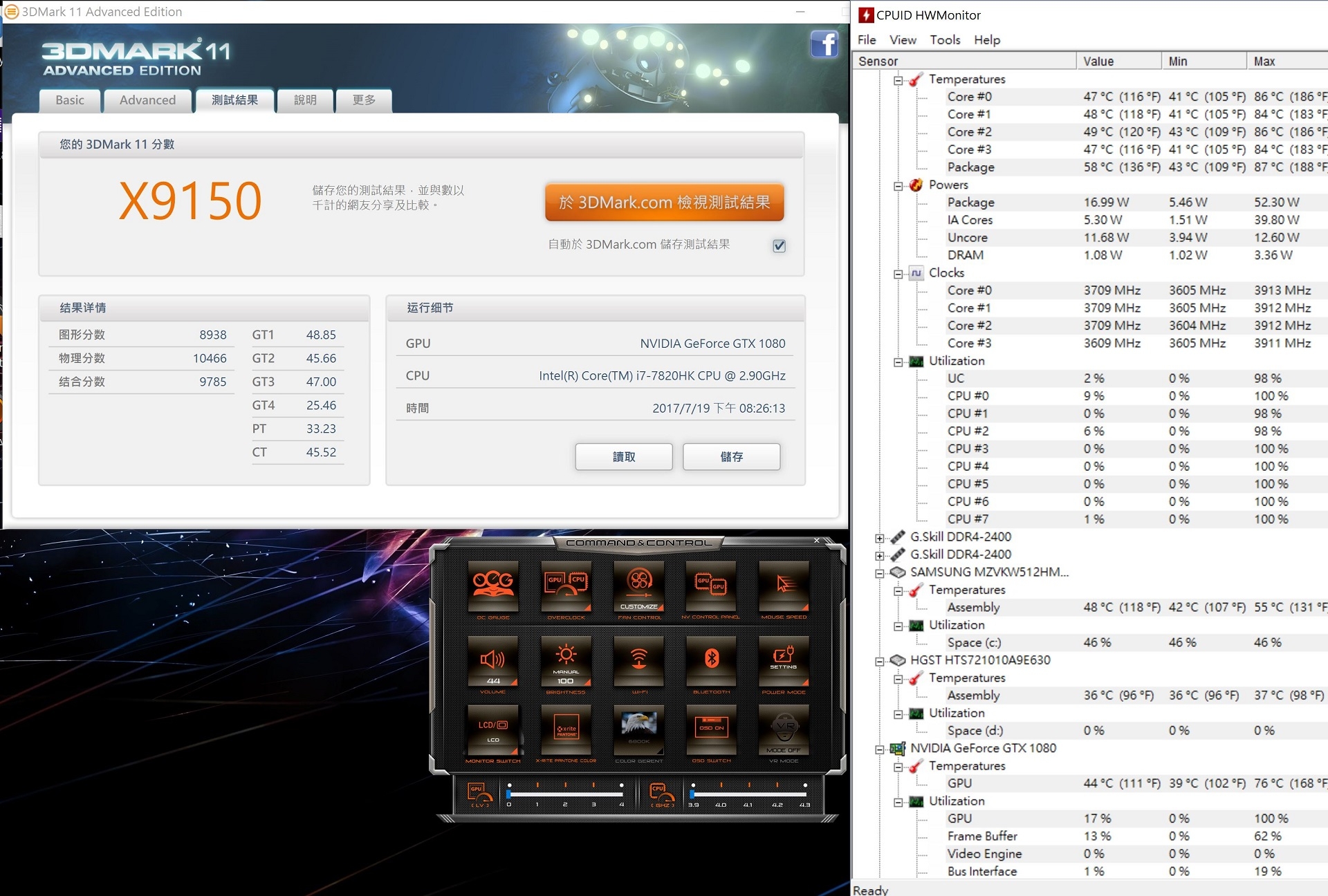 CPU的部分,使用I7 7820HK