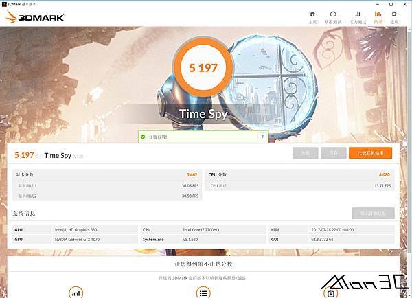 3D分數5462分,性能僅比桌面板GTX 1070弱一點點