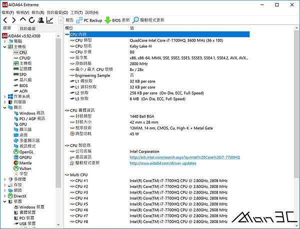 採用第七代 Intel® Core™ i7-7700HQ 處理器,4核心8執行序,性能僅比桌面板I7(非K)再弱一些,遊戲/日常使用皆沒有問題