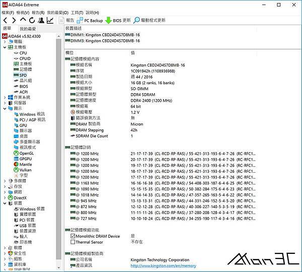 ▲ 金士頓 DDR4 2400 16G * 2 (美光顆粒)