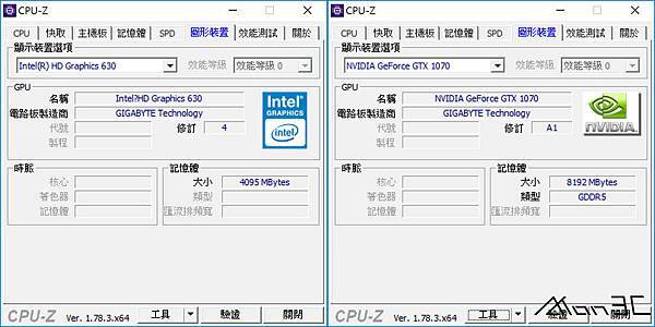 ▲ CPUZ資訊 - GPU (INTEL) / GPU (NVIDIA)