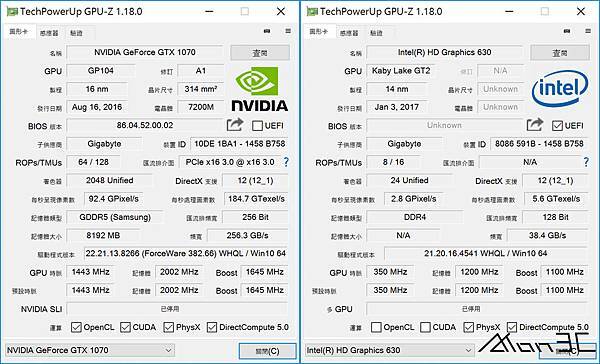 ▲ GPUZ資訊 - GPU (NVIDIA) / GPU (INTEL)