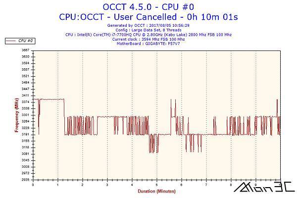 時脈約在3.3~2.9之間,溫度方面AIDA64讀取出錯物值故不列入參考