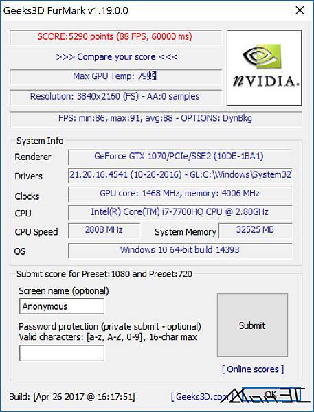 GTA V技嘉P57X V7可以輕鬆應付,雖然解析度4K,不過1070的VRM大概才吃3G而已,相當足夠,只是跑遊戲時,風扇聲挺大聲的