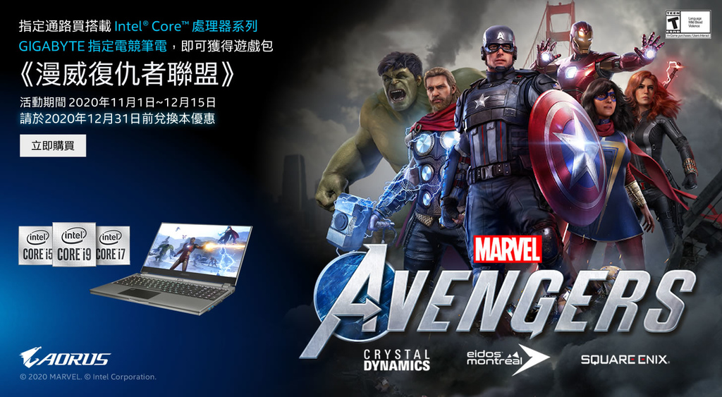 另外,現在購買 Aorus 15G 還可搭配 Intel 贈送漫威復仇者聯盟遊戲的活動,詳請可看 Intel 官網。