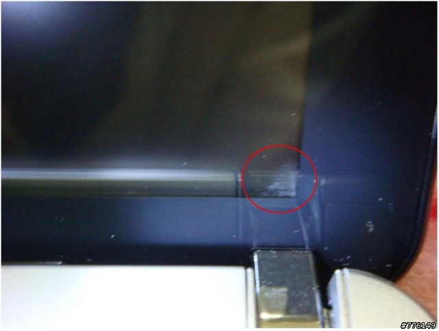 鬱卒…本來還以為我的團購版HP 2140很正常,沒想到一切都被鏡面給騙了!看了其他人的慘狀之後,我也馬上拿 LED手電筒 來檢查看看我的HP 2140螢幕…s我的媽媽咪啊,神秘的鏡面螢幕裡面根本就暗藏玄機,已經開起派對來了!我明明已經把螢幕擦的超乾淨的,怎麼搞的,有一大堆大大小小的灰塵佈滿在「螢幕裡面」?「螢幕裡面」可說是應有盡有,除了大大小小的灰塵、刮痕、毛絮還有「指紋一枚」我還真是頭一遭遇到如此誇張的狀況!= ="附上幾張照片,因為灰塵和指紋太難拍了,我的小相機拍不出來 >"<而且反光太嚴重了,一直拍到自己!不然真的很想把這枚指紋拍出來給各位看,太誇張了!----------------------------------------------------------↓極為明顯的毛絮,關機後看得更明顯!↓主機背面被撕過的貼紙痕跡,照片中看起來不太明顯, 但是我一收到這台電腦時,肉眼看一眼就注意到了!>_< 對了,而且當時主機背面還有發現殘膠,但是已經被我清除!↓這太誇張了,螢幕中發現無數的刮痕,大大小小遍布各處 = =" 這張圖只是刮痕的一小部分,因為實在是太難拍了! 因為鏡面的關係真的很難被注意到這些刮痕,關機後用手電筒一照原形畢露!(順便再附帶一顆白色的灰塵)↓收到電腦時,一打開看到鍵盤的感覺就是「挖~按鍵真大!」 然後接著就是:「疑~這按鍵怎麼好像不太整齊?」↓這是最讓我擔心的了!把主機翻過來,電池拔掉之後就能看到! 左側的鍵盤組裝不密合,用手去掰掰看還有空間,但是右側的鍵盤卻非常密合! 擔心日子久了,鍵盤會漸漸得更靠向螢幕 >O<