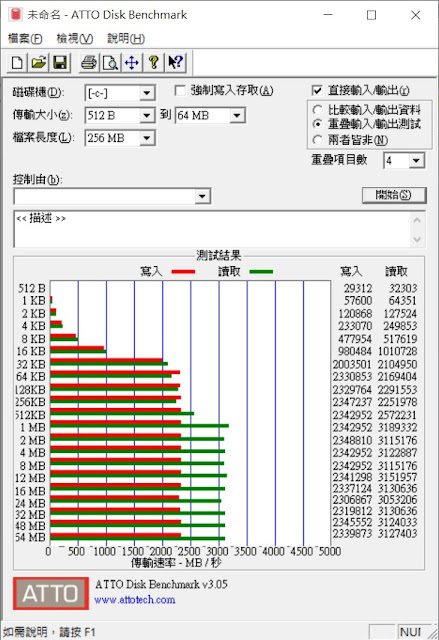 ▲ 號稱快樂表的ATTO bench可以跑到寫入2334MB/S、讀取3130MB/S,速度不可謂不快。